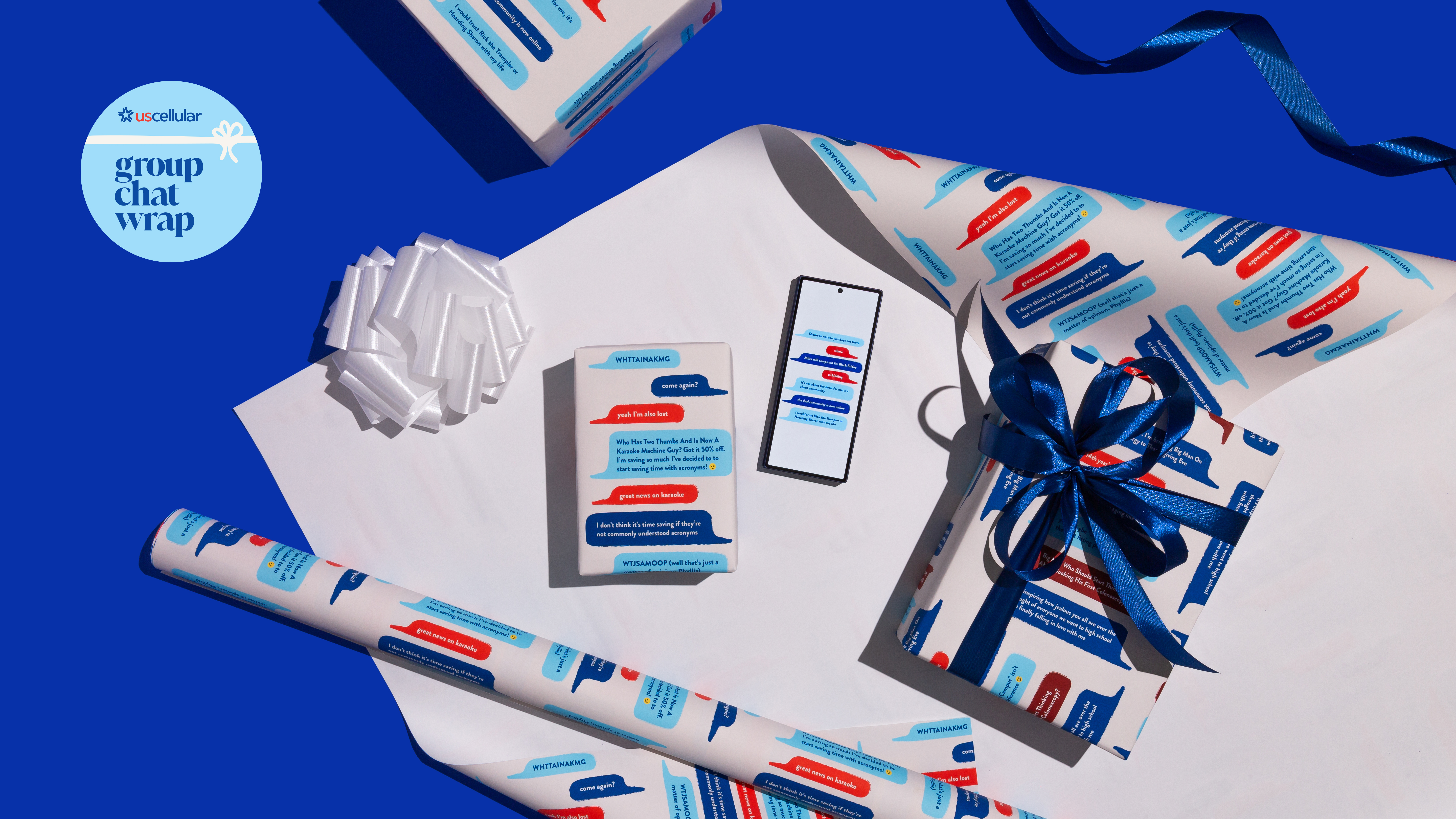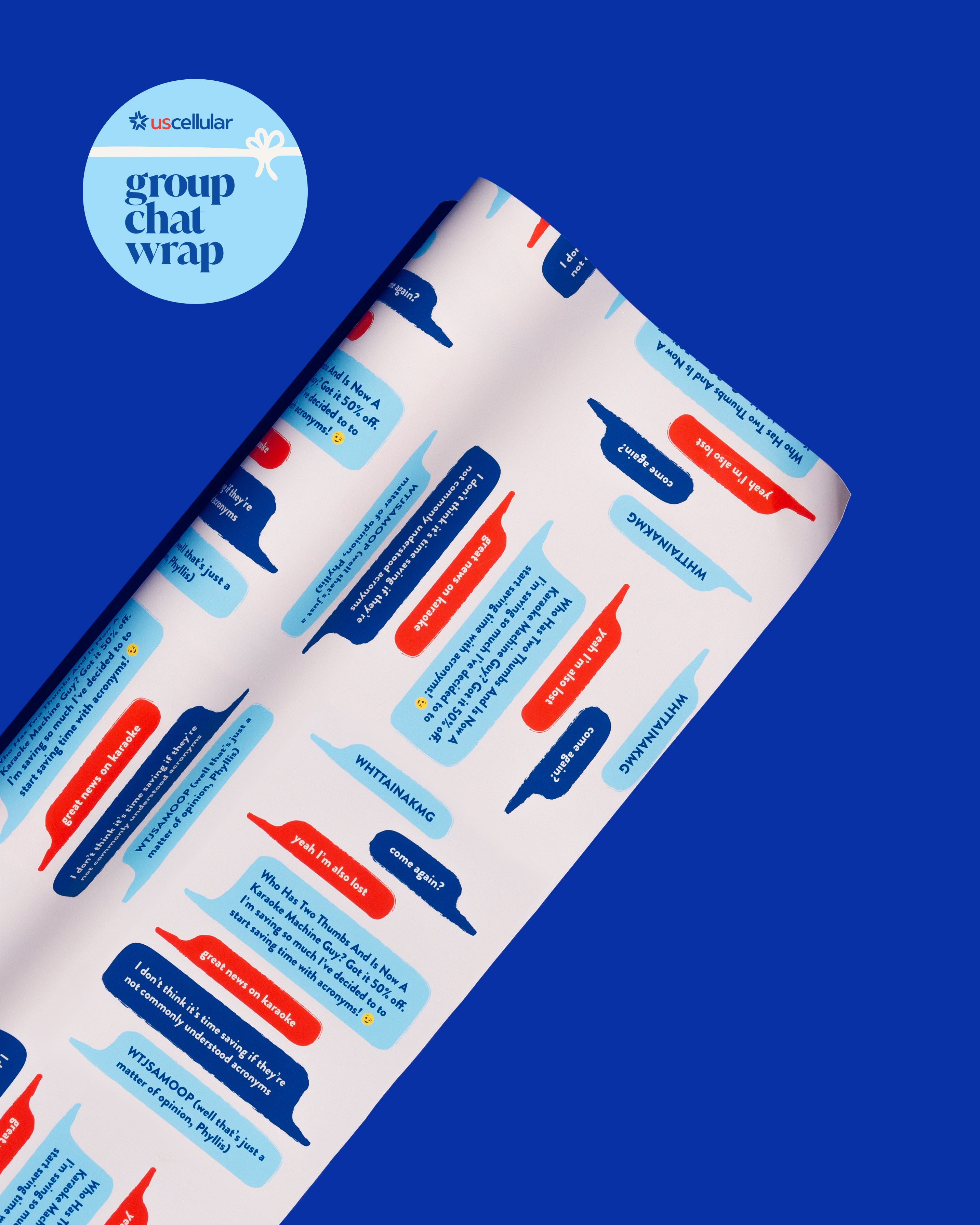 So we made the first rolls of Group Chat Wrap from real text exchanges between the hosts of Podcrushed (Penn Badgley, Sophie Ansari, and Nava Kavelin) and Workin' On It (Meghan Trainor, Daryl Sabara, and Ryan Trainor).